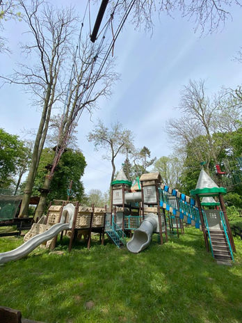 Na terenie parku znajduje się super plac zabaw składający się z trampolin, dmuchańców, zabawek oraz zamku.
